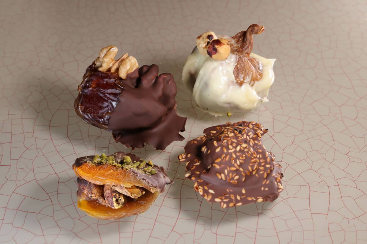 - Chocolate apricot, roasted pistachios (a hint of rose water)